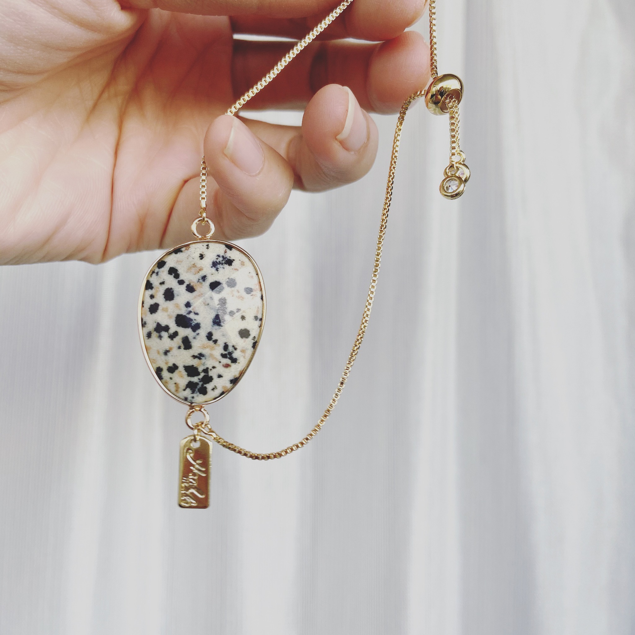 また、珍しいダルメシアンジャスパーの18kgpブレスレット