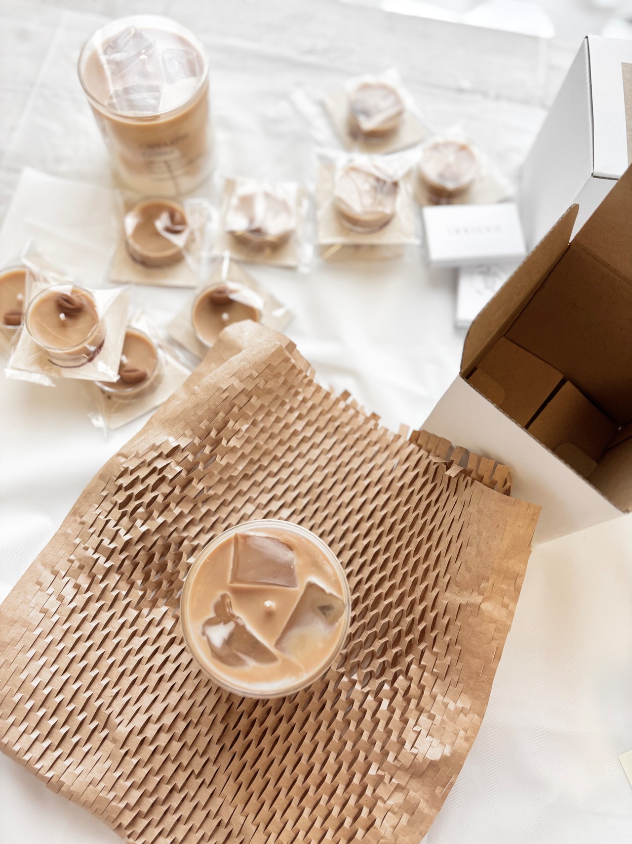 カフェラテを忠実に再現したフレグランスキャンドル。氷がキラキラと溶けていく様子も楽しめます。