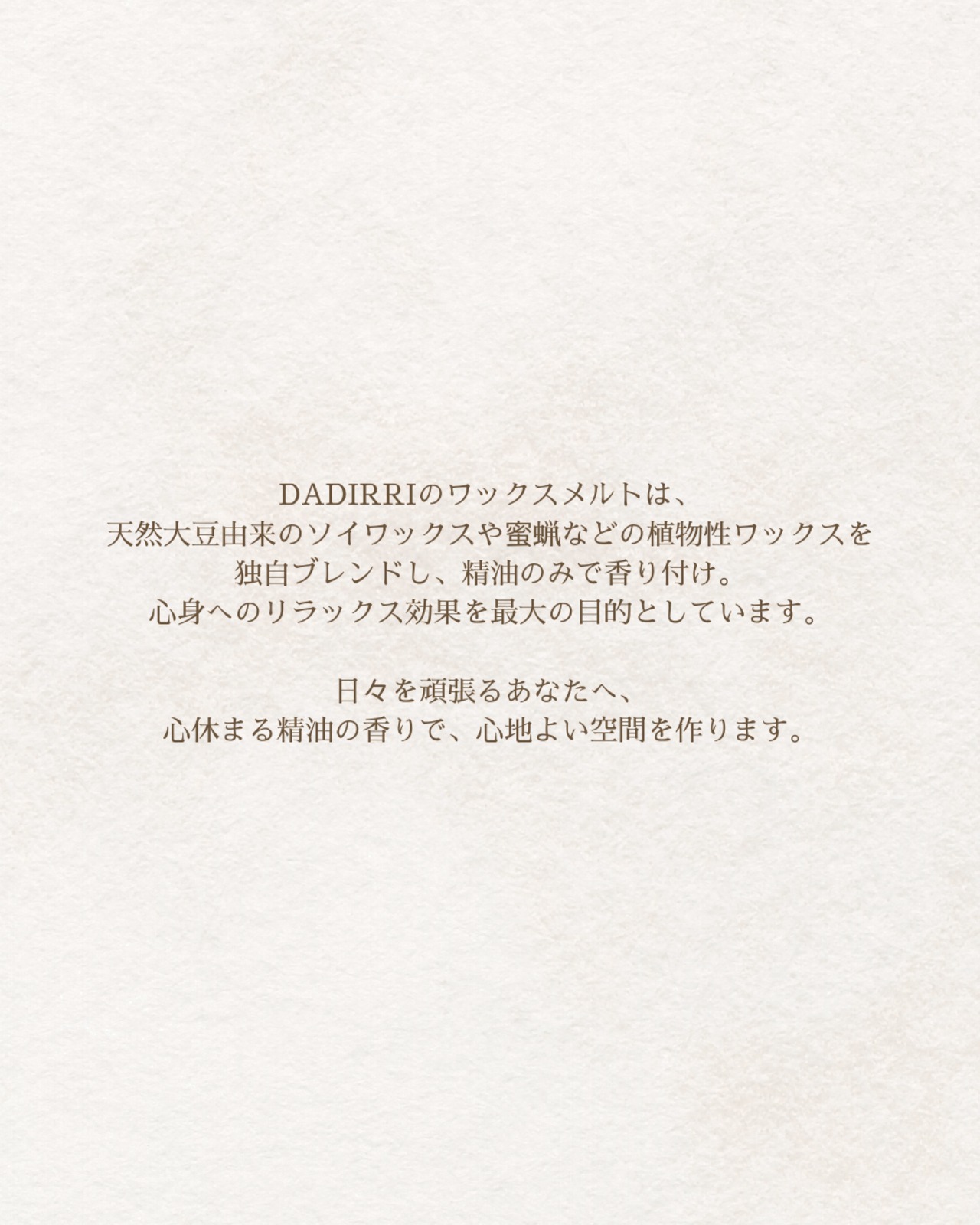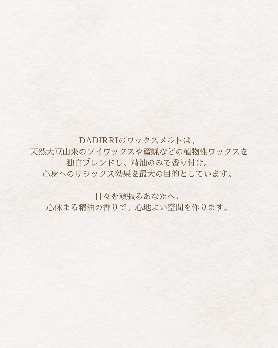 100%天然大豆からできたソイワックスを使用し、他植物性ワックスをオリジナルの配合でブレンド。