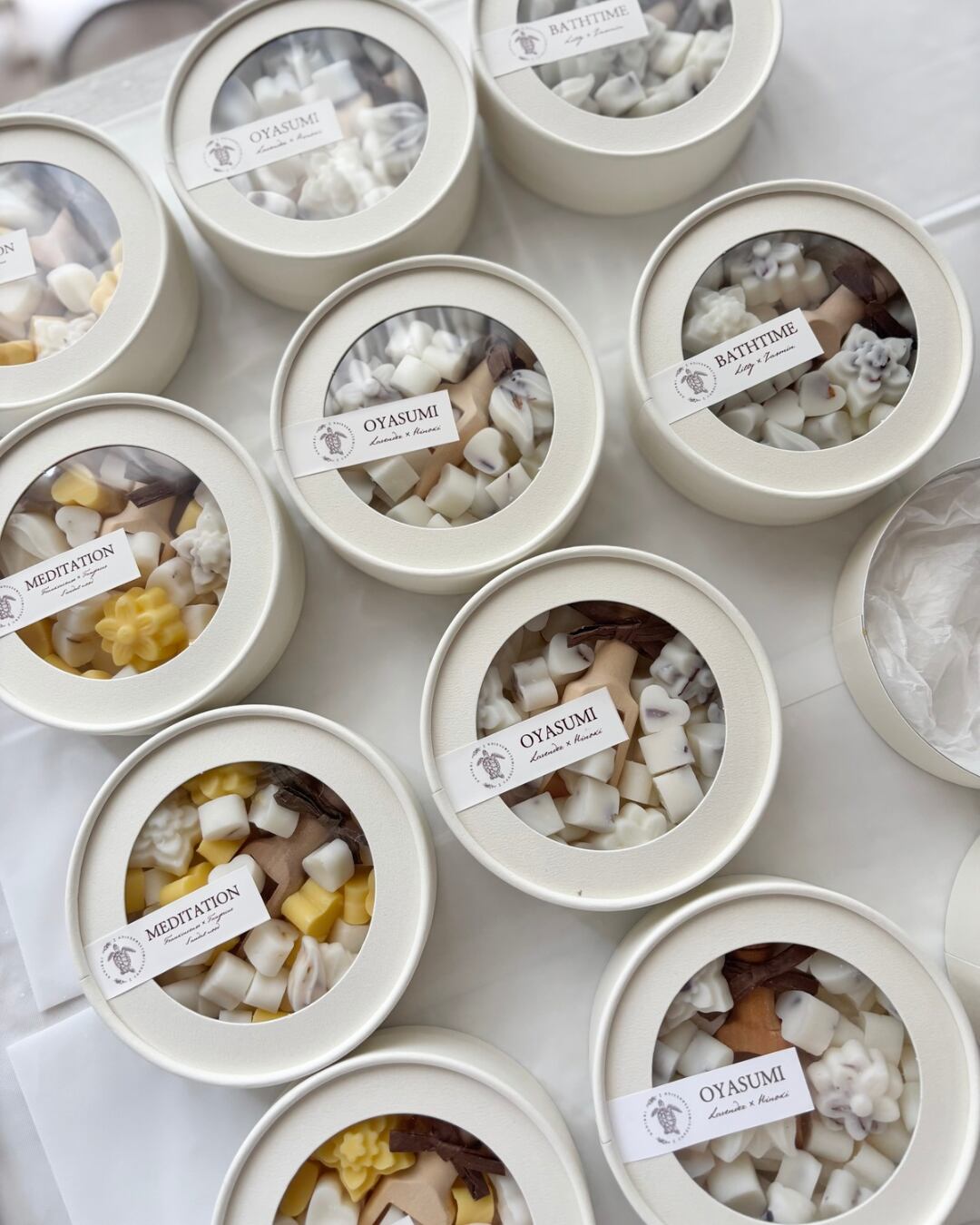 ※ 粒によって、花入りと花なしで香り分けしています。ブレンドせずとも粒を選ぶことで一種の香りのみを楽しむこともできます。(BATHTIMEブレンドのみ全ての粒が同じ香りです。)